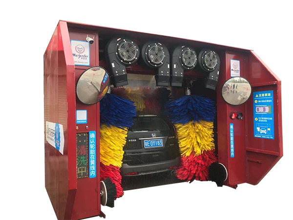 龍門洗車機實現(xiàn):自動沖洗底盤(一般不要用自動沖地盤,因為有些車質(zhì)量不好可能會把汽車喇叭沖壞)、自動噴電腦洗車機專用洗車液和水蠟、自動仿行刷洗、自動仿行風(fēng)干。一輛臟車進去,一輛凈車出來,洗車時間大體為3分左右。適合日洗車輛在120輛以下的汽車美容店等地。