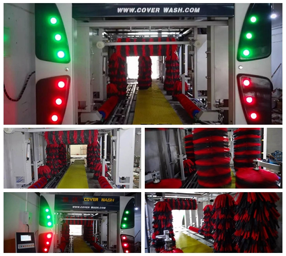 隧道式洗車機主要用于對各種中小型車輛的外表進行高壓水沖洗、刷洗、蠟洗、底盤清洗、風(fēng)干作業(yè)。當(dāng)車輛進入洗車房后,經(jīng)過自動牽引軌道,首先由高壓水刀完全沖掉附于車體上的微小沙粒及灰塵;再經(jīng)噴淋高泡清洗液和多組超軟泡棉對車輛表面及輪廓作多方位包裹清洗。